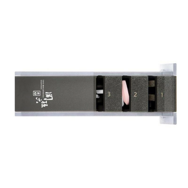 1. Posez la face du tranchant sur la pierre à aiguiser en conservant l’angle de coupe déterminé en usine.