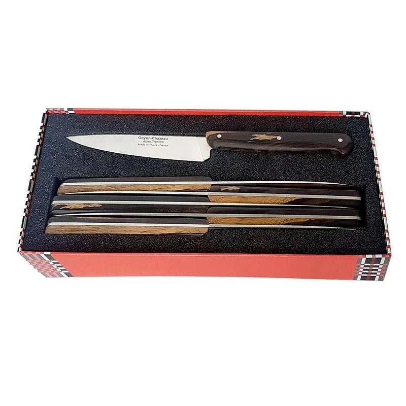 Les couteaux de table et de cuisine Goyon Chazeau sont 100% forgés. Les manches des couteaux Goyon Chazeau sont en bois de qualité caractérisés par leur robustesses et leur imputrescibilité!