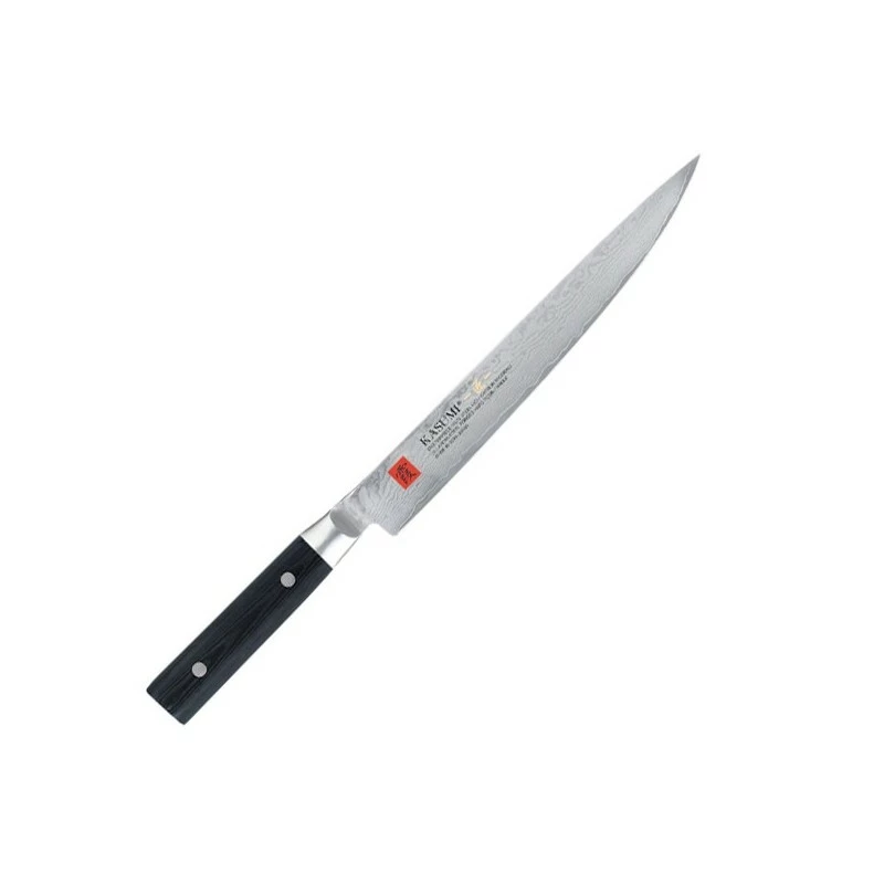 Ce couteau à découper convient pour un usage particulier en cuisine. Pour les professionnels, nous vous proposons le modèle avec lame plus longue : couteau à découper « tranche lard » damas Kasumi Masterpiece 24cm.