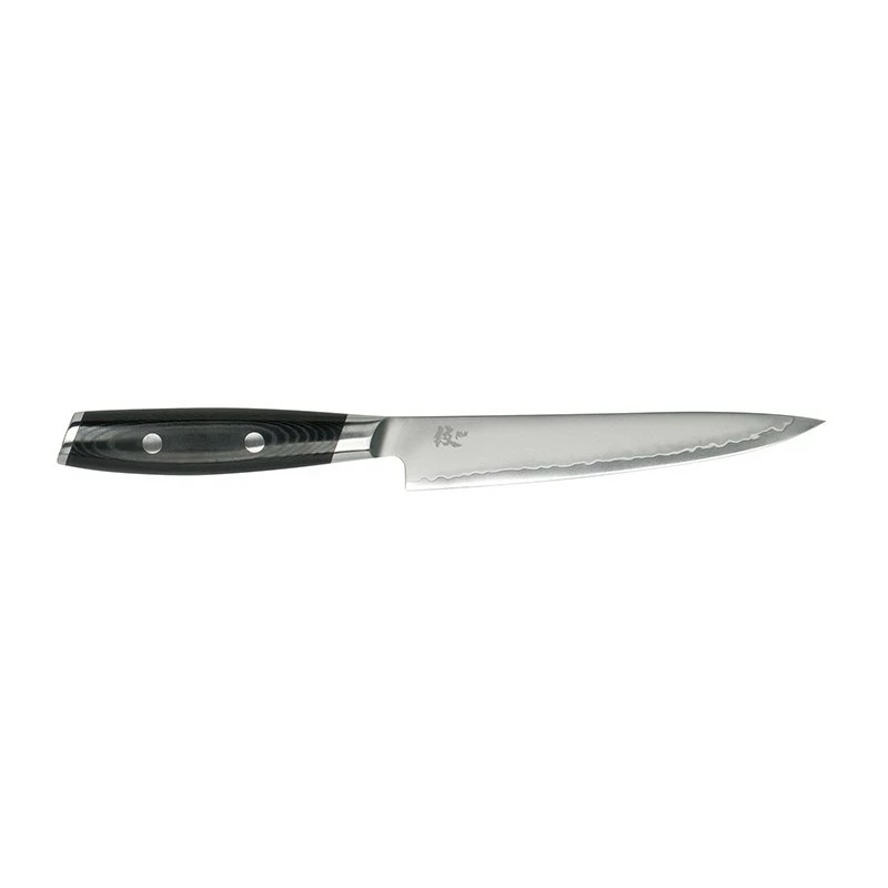 La lame de ce couteau à découper japonais Yaxell MON tient son tranchant exceptionnel à sa composition : acier VG10 3 couches, dureté rockwell 60-62 HRC