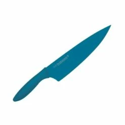 La lame en acier inox de ce couteau de chef japonais est recouverte d`une résine fluorée anti-adhérente. Une couleur a été attribuée à chacun des modÚles.