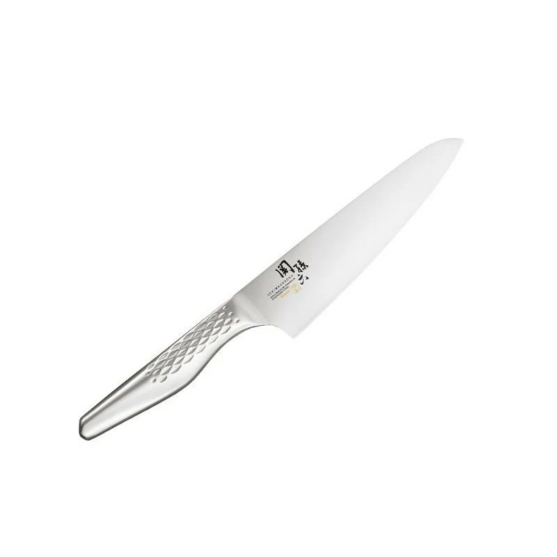 Le couteau de chef japonais KAI Shoso a une structure intégrale, c`est-à-dire qu`il n`y a pas de soudure entre la lame et le manche. La technique exclusive d`affûtage comporte 3 étapes ce qui permet une meilleure découpe des aliments.
