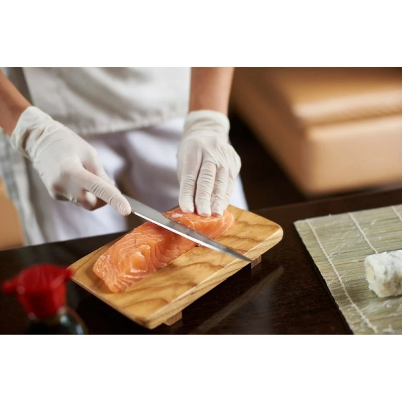 Les couteaux yanagiba « feuille de saule » sont typiques du Japon et servent à travailler le poisson, lever les filets, découper les sushis et sashimis.
