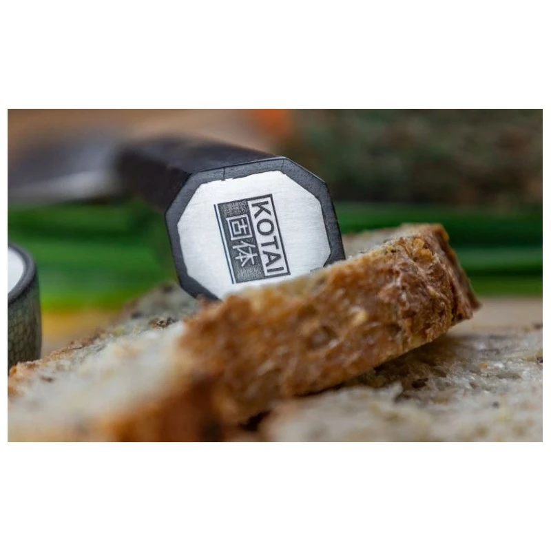 Le couteau kiritsuke japonais KOTAI Bunka est muni d’une lame forgée en acier inoxydable japonais 440C à haute teneur en carbone aiguisée comme un rasoir. L’acier 440C combine une teneur élevée en carbone pour une dureté élevée et pour un tranchant durable avec une quantité optimale de chrome pour la résistance à la corrosion. La répartition parfaite du poids et le manche en ébène poli à la main ont été conçus pour vous permettre de couper les aliments sans effort.