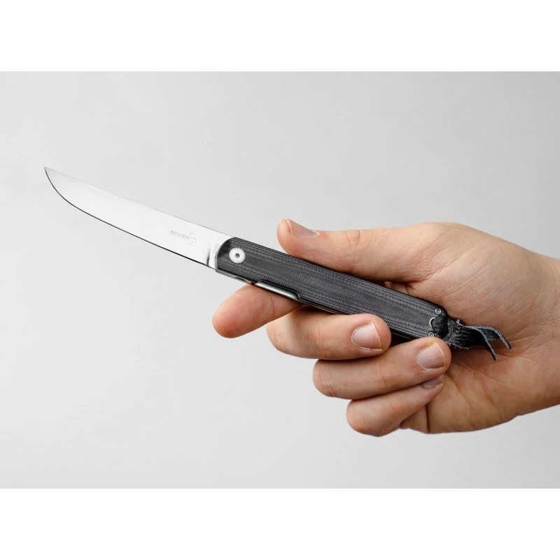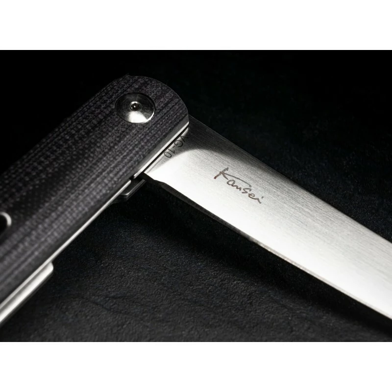 Le Boker Plus Nori est une nouvelle gamme de couteaux de gentleman du coutelier japonais Kansei Matsuno. Le design fin et la construction légère du Wasabi ont été combinés ici avec le flipper avant extrêmement pratique et le linerlock stable du LRF. La lame en acier VG-10 sur roulements à billes possède une finition satinée longitudinalement particulièrement fine. Les plaquettes de poignée sont en G10 texturé monté sur des revêtements en acier inoxydable. Le design épuré et la lame japonaise classique font du couteau Boker Plus Nori le couteau de poche idéal pour un usage quotidien.