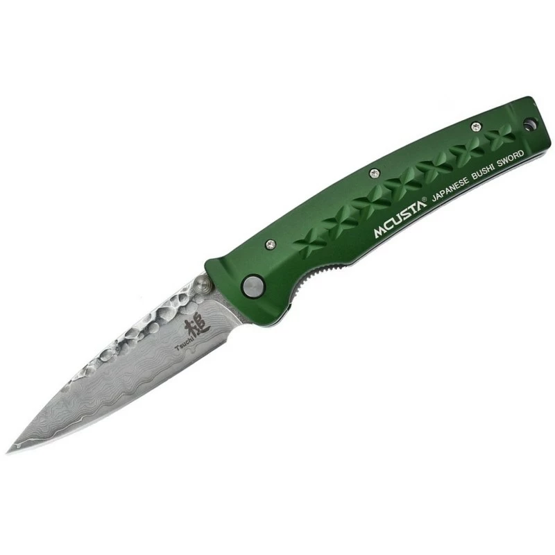 Ce couteau MCUSTA « FUSION » est doté d’une lame en acier VG-10 damas inox de 66 couches à cran intérieur et à bouton double. Le manche de ce couteau japonais de poche est en aluminium anodisé vert, avec clip amovible.