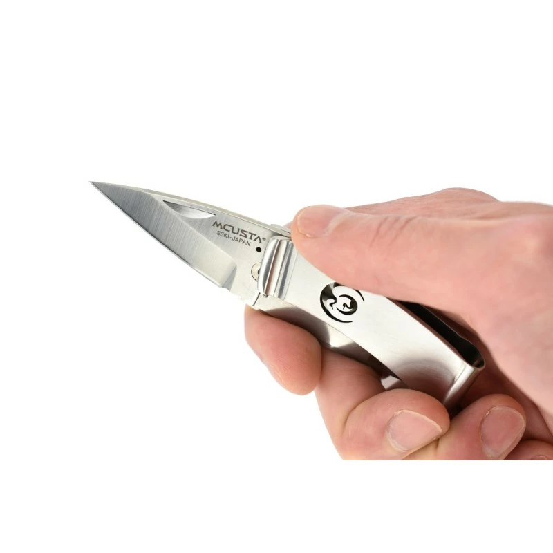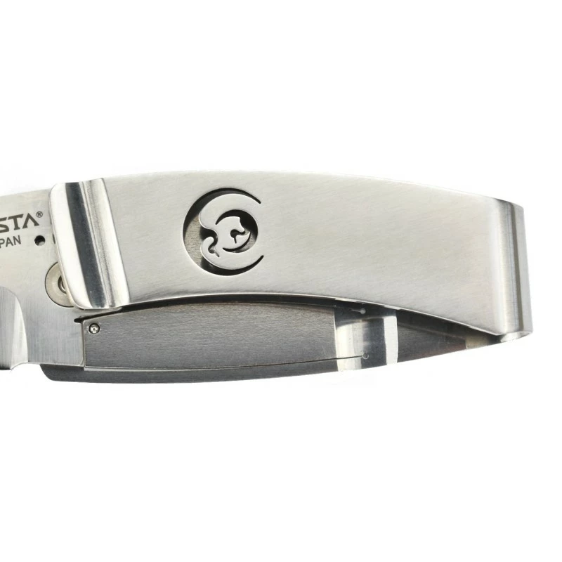 Ce couteau de poche japonais MCUSTA « KAMON » est caractérisé par son manche et son clip en une seule pièce d’acier inoxydable avec une barre de verrouillage découpée au laser. Une pince à ongles et une lame en acier inoxydable AUS8, pour un déploiement facile. Ce couteau pliant fonctionnel a une belle finition satinée avec le Crest Tsuru Family gravé et découpé au laser.