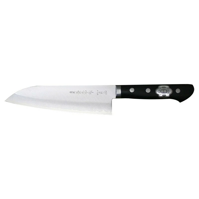 Le couteau santoku japonais est un couteau de cuisine très polyvalent. La lame haute au talon lui permet de couper et émincer très facilement sur planches.
