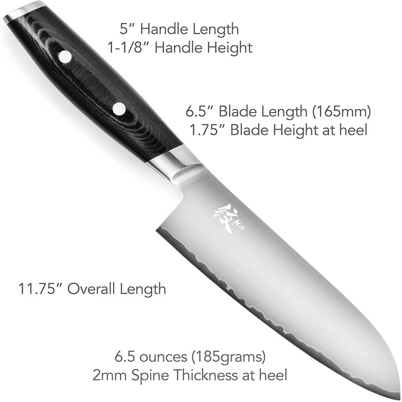 La lame de ce couteau santoku japonais Yaxell MON tient son tranchant exceptionnel Ă sa composition en acier VG10 3 couches mais qui garde une souplesse utilisation.