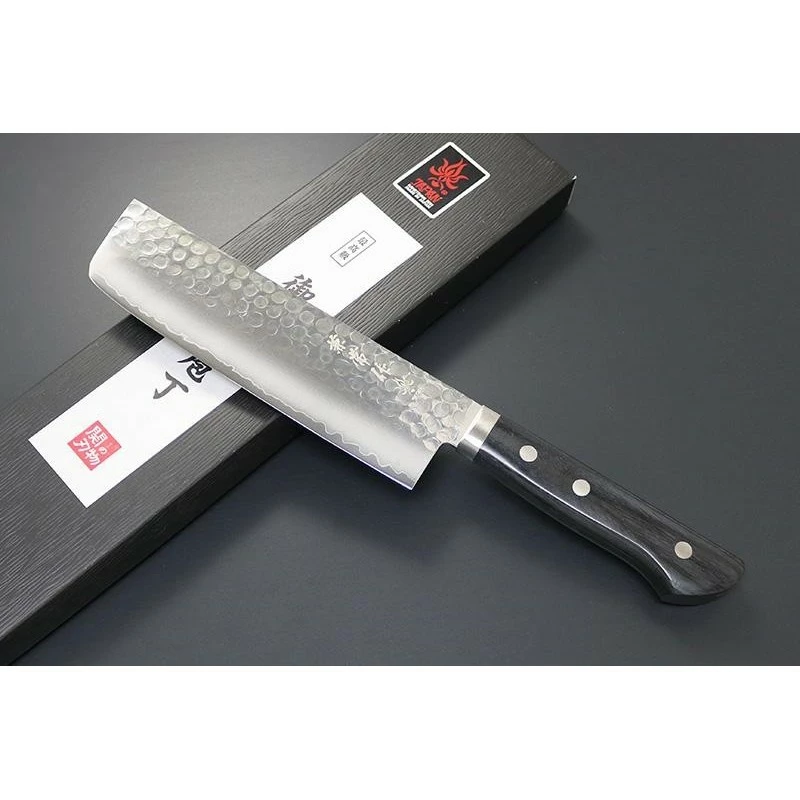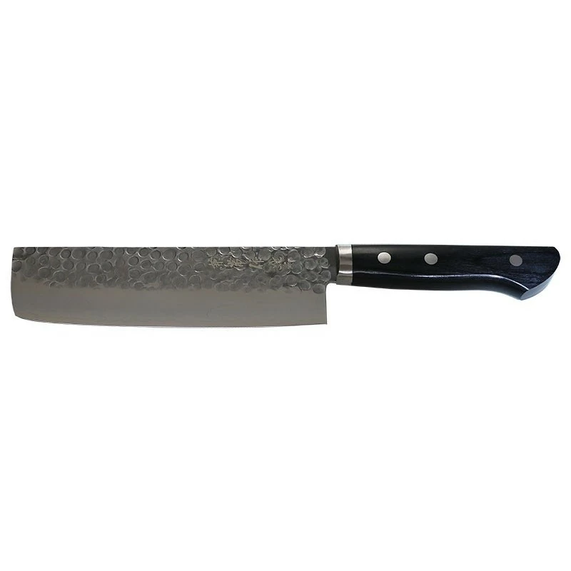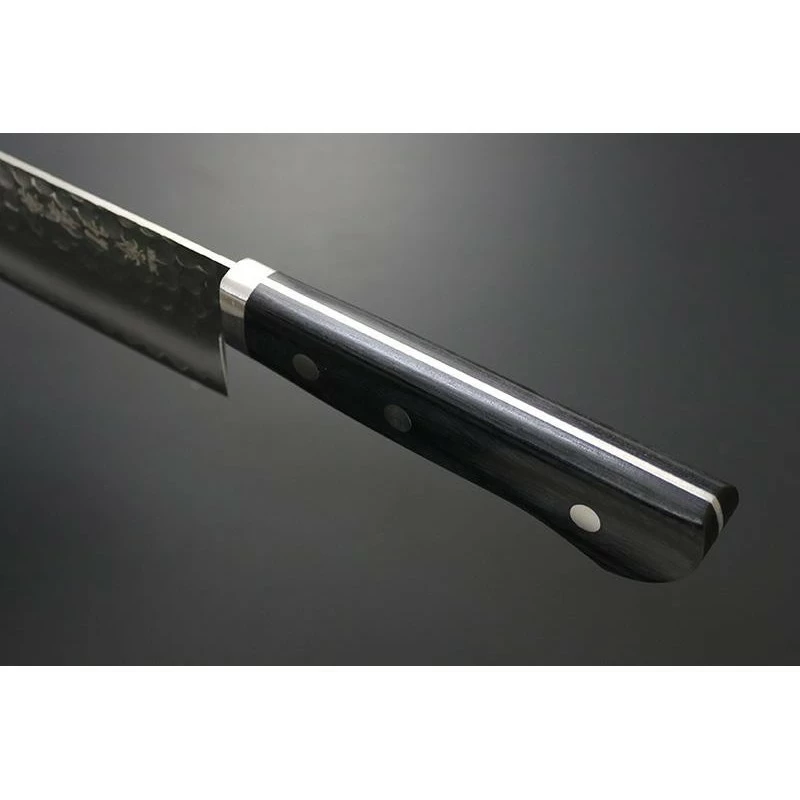 Ce couteau japonais traditionnel de la série Tsuchime VG-1 est doté d’une lame Hon-Warikomi San-Mai (3 couches) avec un noyau en acier inoxydable VG-1. Le manche de ce couteau usuba japonais est bois noir lisse.