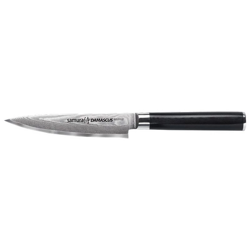 Le couteau utilitaire Samura Damascus est un couteau japonais de cuisine performant et durable. La lame en acier damas 67 couches offre une coupe nette et prĂ©cise. L’Ă©lĂ©gant manche en G10 offre une prise en main agrĂ©able ainsi qu’une haute rĂ©sistance Ă l’humiditĂ©. Il possède un traversin en acier pour une plus grande durabilitĂ© et un contrĂ´le complet.