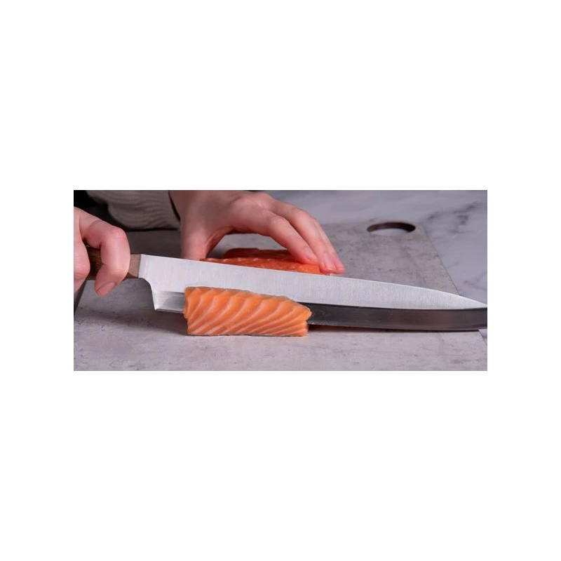 Ce couteau yanagiba de la gamme Nordika d’Arcos est muni d’une lame en acier Inoxydable NITRUM : formule exclusive ARCOS en acier Ă l’azote qui offre plus de duretĂ©, une plus grande puissance de coupe et une meilleure durabilitĂ© des arĂŞtes. Le manche de couteau de cuisine Yanagiba Arcos Nordika est en bois Ovengkol 100% naturel issu de forĂŞts certifiĂ©es FSC, label de qualitĂ© garantissant l’abattage durable et contrĂ´lĂ© des arbres dont le bois a Ă©tĂ© extrait. Il sera parfait pour permettre la dĂ©coupe en un geste de doux balancement, pour dĂ©couper le poisson en filets et pour la prĂ©paration de sushi et sashimi avec prĂ©cision et avec Ă©lĂ©gance.