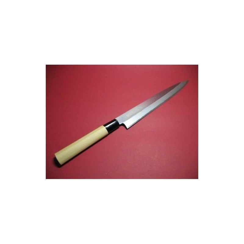 Yanagiba KANETSUNE est le couteau le plus utilisé par les maitres Sushi. Ce couteau est idéal pour enlever la peau des poissons et pour couper les sushis alignés les uns derrière les autres.