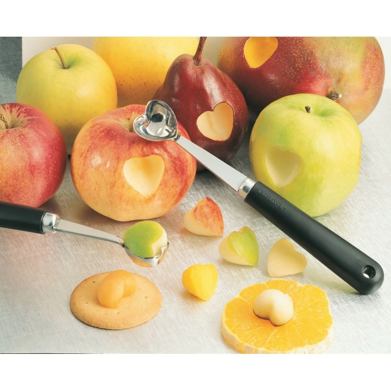 La cuillère à pomme, appelée aussi moule à pomme, pomme parisienne ou encore cuillère à melon, permet de créer de petites billes ou boules de légumes ou de fruits. Le moule à pomme permet une découpe précise et facilitée grâce à sa lame en demi-sphère et à son biseau affilé sur tout le pourtour.