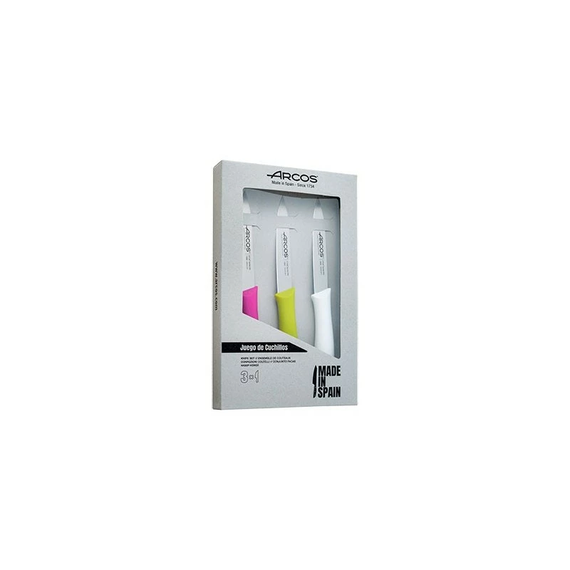 Ces 3 couteaux office de la gamme Nova d’Arcos peuvent convenir comme couteaux de cuisine ou comme couteaux Ă steak de table.